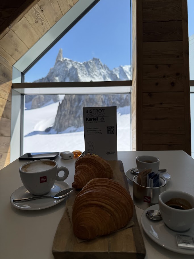 ☕ 이탈리아에서의 커피 타임 이탈리아에 왔으니 에스프레소를 빼놓을 수 없죠! 전망대 내 ‘Bistrot Panoramic’ 카페에서 크로와상과 에스프레소를 주문했습니다. 역시 커피의 종주국답게 맛은 더 진하고, 가격은 프랑스보다 저렴했습니다.