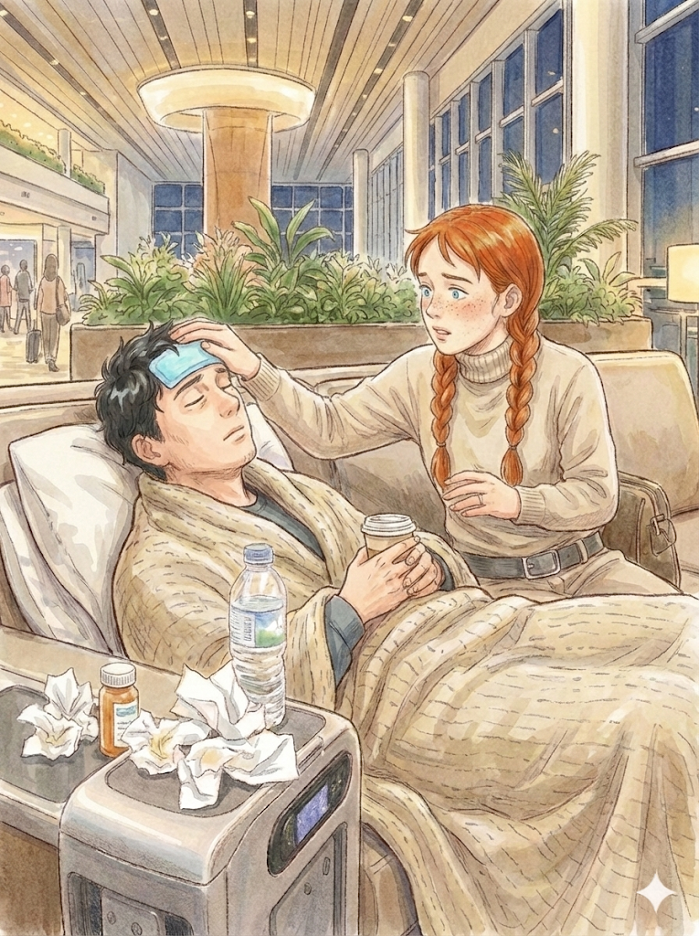 결국 갈 곳을 잃은 우리는 공항 공용 구역의 벤치 신세를 지게 되었습니다. “누가 공항 벤치에서 자나” 했던 그 모습의 주인공이 바로 제가 될 줄이야. 오한에 떨며 벤치에 누워있는 저를 위해 아내는 불편한 의자에서 쪽잠을 자며 계속 제 상태를 살폈습니다. 미안함과 고마움이 교차하는 순간이었습니다.