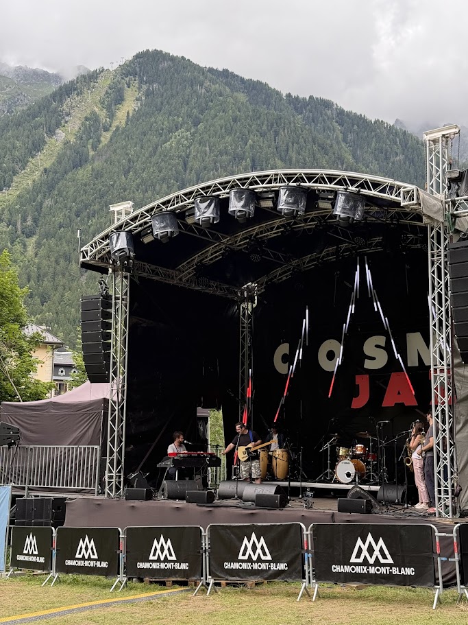 시내로 들어서니 평소보다 훨씬 활기찬 분위기가 느껴졌습니다. 광장 한편에 무대가 설치되어 있고 리허설이 한창이었는데요, 알고 보니 매년 여름 샤모니 계곡 전체를 무대로 펼쳐지는 유명한 음악 축제인 ‘코스모 재즈 페스티벌(Cosmo Jazz Festival)’ 기간이었습니다. 알프스의 대자연 속에서 즐기는 재즈라니, 낭만 그 자체더군요. 마을 전체가 들썩이는 활기찬 에너지를 받을 수 있었습니다.