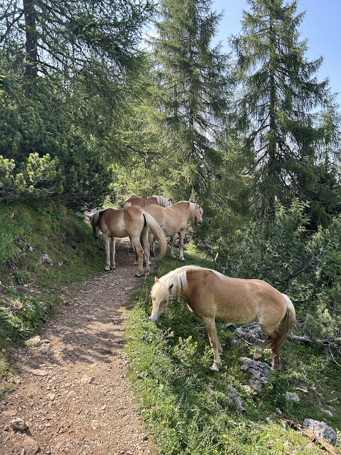 그때, 반대편에서 내려오던 한 무리의 일행이 구세주처럼 나타났습니다. 그들은 우리와 달리 과감하게 말 곁으로 다가가 자연스럽게 이동을 유도했고, 거짓말처럼 말들이 길 아래쪽으로 비켜주더군요. 익숙하지 않은 동물 앞에서 쩔쩔매던 우리에게 그들의 등장은 정말 고마운 일이었습니다. 알페디시우시에서는 동물이 주인이고 우리는 잠시 들른 손님일 뿐임을, 그리고 때로는 타인의 용기가 큰 도움이 된다는 것을 배운 순간이었습니다.