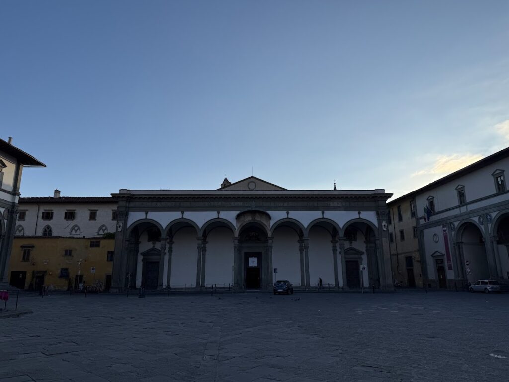 산티시마 안눈치아타 성당은 피렌체에서 가장 존경받는 성모 마리아 성지 중 하나입니다. 화려한 관광지라기보다 피렌체 시민들의 안식처 같은 곳이죠. 이른 새벽부터 기도를 드리러 들어가는 현지인들의 뒷모습을 보며, 저희 부부도 잠시 섞여 들어가 경건한 마음으로 여행의 안녕을 빌었습니다. 광장 오른편에는 고아들의 피난처였던 ‘오스페달레 델리 이노첸티’의 우아한 아치 회랑도 볼 수 있습니다.