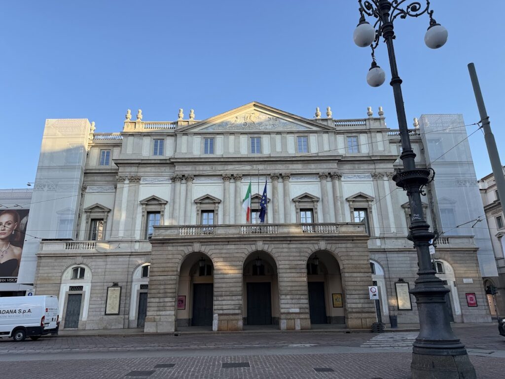 갤러리아를 통과해 나오면 라 스칼라 극장(Teatro alla Scala)을 마주하게 됩니다. “세계 3대 오페라 극장”이라는 명성에 비해 외관은 생각보다 수수하고 평범해 보였습니다. 사실 이곳은 2차 대전 때 폭격으로 파괴되었다가 재건된 아픈 역사가 있다고 합니다.