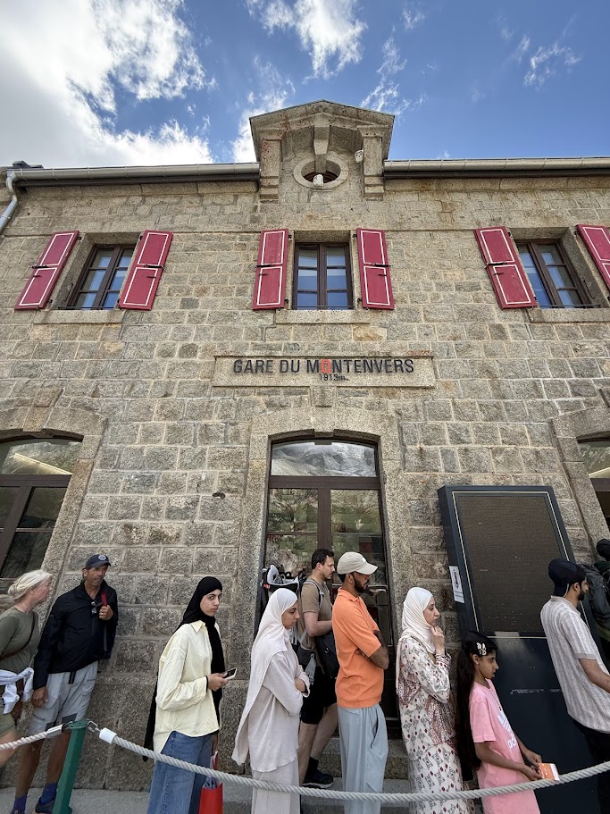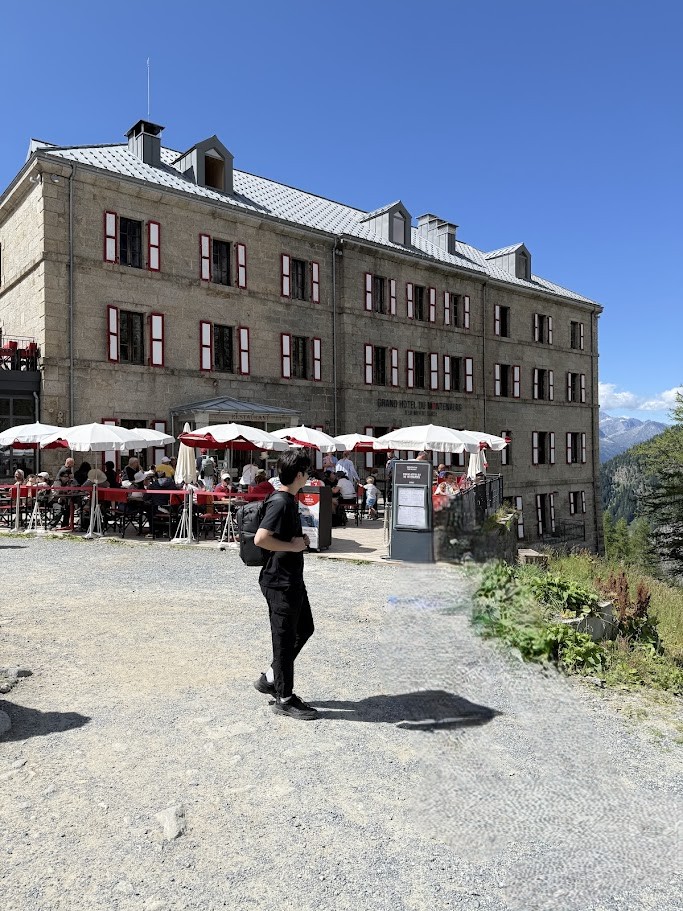 트레킹 코스를 마치고 하산하면 가장 먼저 우리를 맞이해주는 건물이 바로 ‘그랑 호텔 뒤 몽탕베르(Grand Hotel du Montenvers)’입니다. 육중한 화강암 돌덩이를 쌓아 올려 만든 이 건물은 1880년에 지어져 아주 고풍스러운 자태를 뽐내고 있습니다. 과거 기차가 놓이기 전부터 알프스의 산악인들과 모험가들이 메르 드 글라스 빙하를 탐험하기 위해 머물렀던 역사적인 베이스캠프라고 하네요. 따스한 오후 햇살을 받으며 테라스에서 커피 한 잔의 여유를 즐기고 싶은 유혹이 강렬했지만, 샤모니로 복귀하는 막차 시간이 빠듯하여 아쉽지만 눈으로만 분위기를 담고 발걸음을 옮겼습니다.